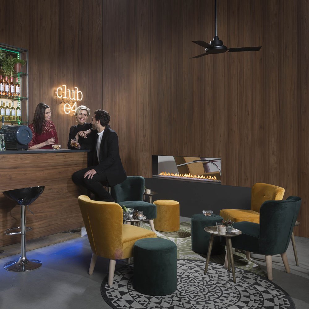 De nieuwe Club 140 gashaard van Element4 is beschikbaar als roomdivider, tunnelhaard, hoekhaard en fronthaard. De haard is tevens leverbaar in combinatie met de Multiburner; drie branders die u links en rechts kunt uitschakelen. De Multiburner van de Club 140 serie is bovendien in drie verschillende opties beschikbaar: met houtset, witte kiezels, witte of grijze stenen.