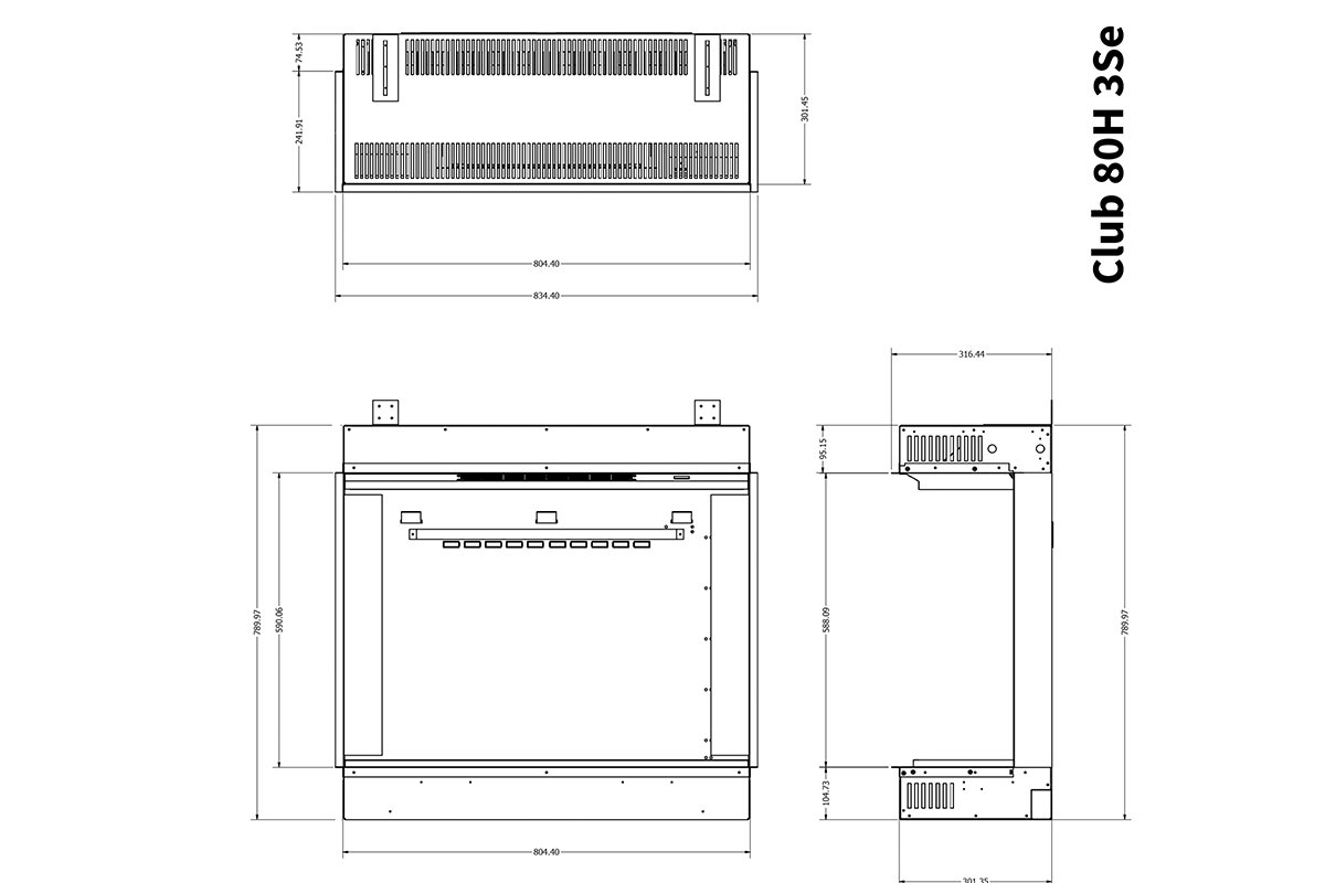 De Element4 Club 80H E wordt geleverd met drie verschillende vuurzichten. Zo kan de haard zowel als front, tweezijdige of driezijdige haard ingebouwd worden. Geheel te integreren naar uw wensen dus