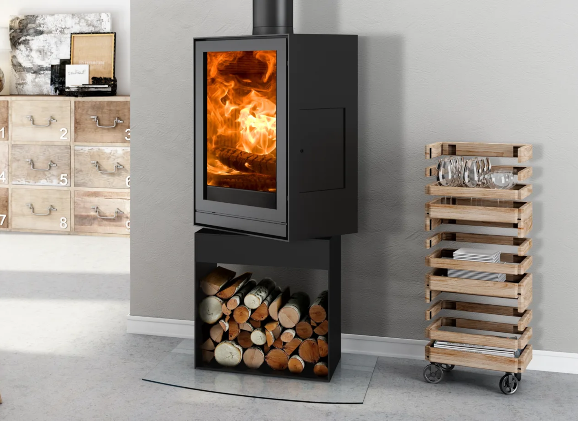 Een strakke houtkachel van Nestor Martin en ook nog eens 360 graden draaibaar, zo kunt u vanuit elke hoek in de kamer genieten van het vlammenspel! De TQH33 is een moderne houtkachel die volstaat in elke woonkamer. Dankzij zijn innovatieve technieken brandt deze kachel ook nog eens prachtig en door het draaibare onderstel geniet u vanaf meerdere kanten van het vuur. Zowel met als zonder sokkel verkrijgbaar. Deze houtkachel is te combineren met verschillende sokkels. Natuurlijk heeft deze strakke haard ook weer de gepatenteerde Woodbox techniek in huis.